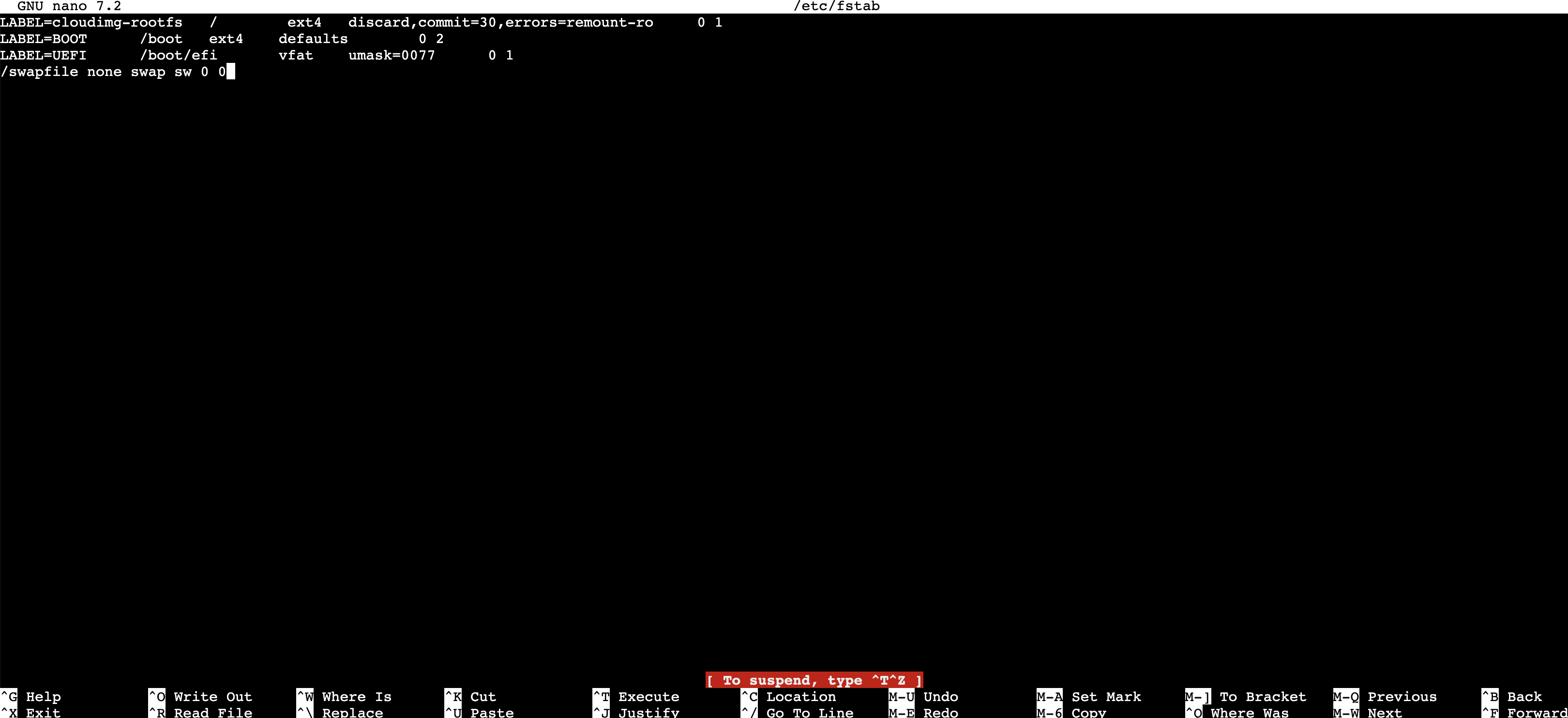#이 줄은 시스템 부팅 시 /swapfile을 스왑 파일로 인식하고 활성화하라는 설정입니다.
