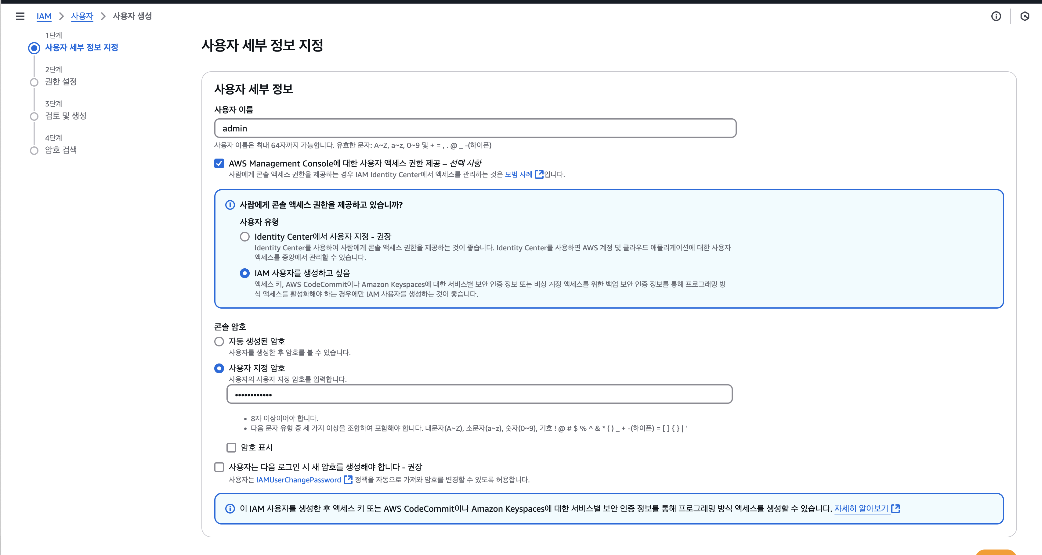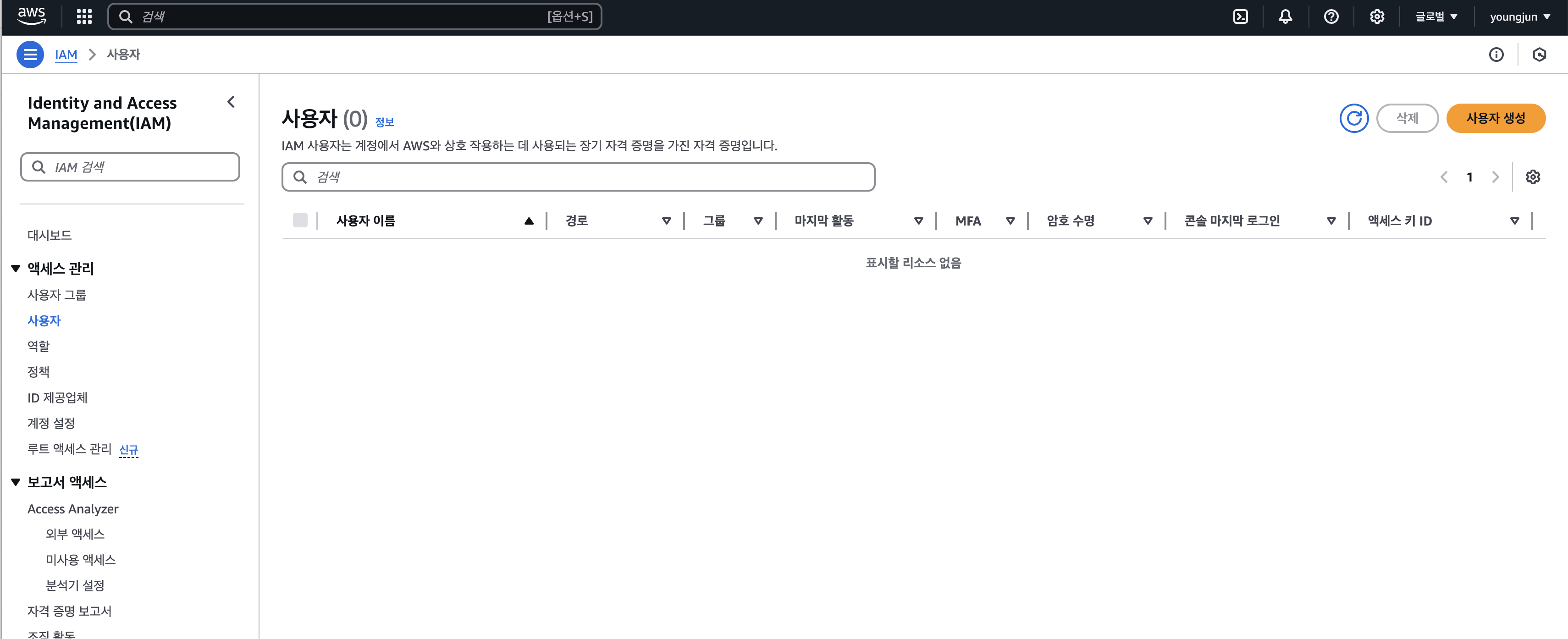 - 다음으로 IAM 사용자를 만들어 주도록 합시다.