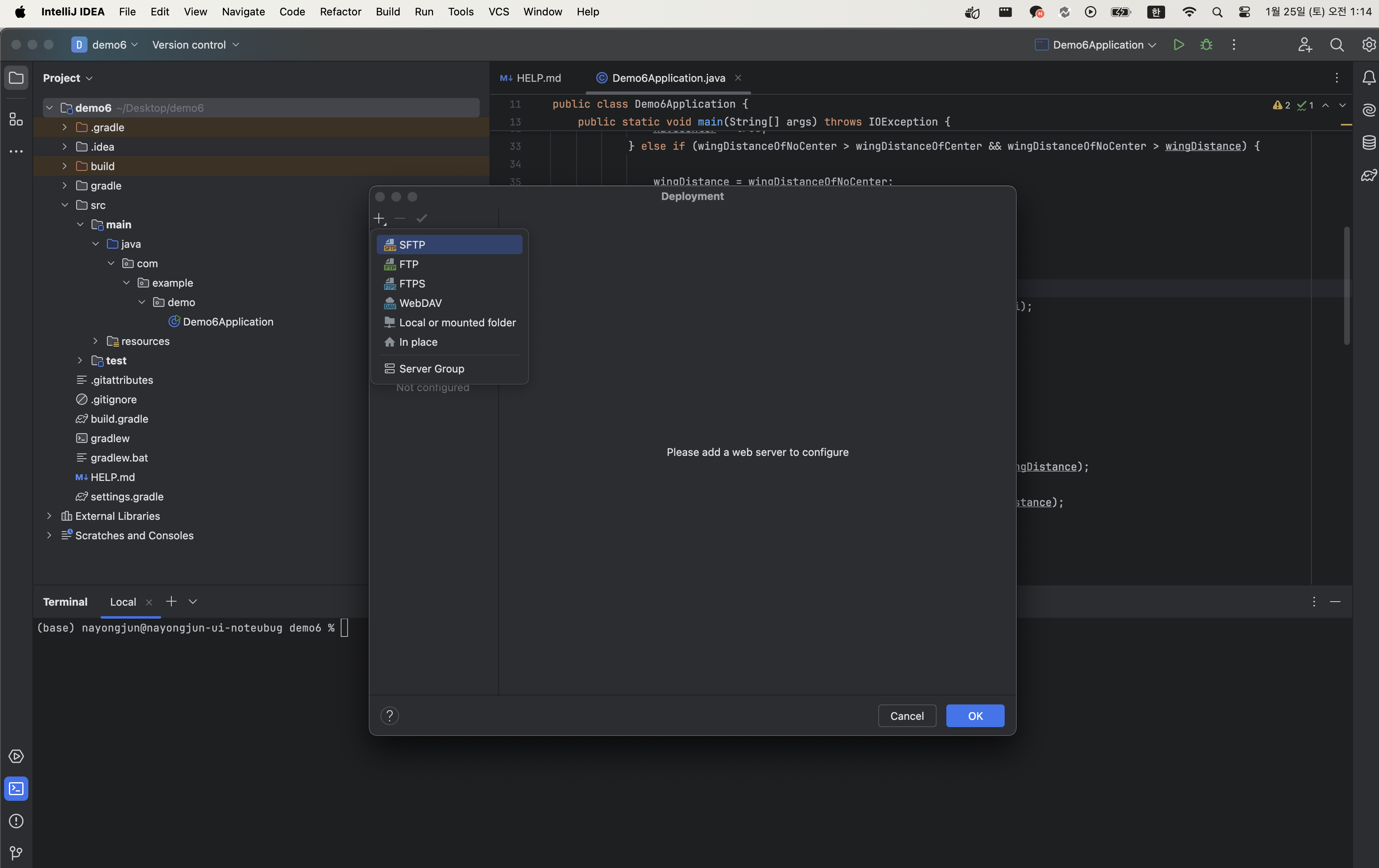 다음으로 SSH 클라이언트입니다. 인텔리제이 터미널에서 접속하는 방법인데요.. 매번 해당 코드를 칠 수는 없으니 인텔리제이에 서버와 인증을 등록해 두도록 하겠습니다.