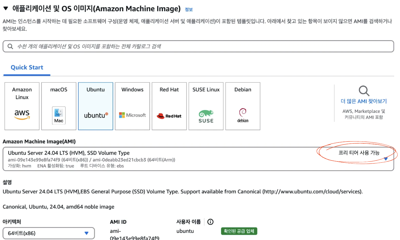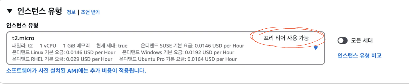 - 만약 다른 인스턴스 유형을 사용하면, 무료 혜택을 받지 못하고 비용이 발생할 수 있습니다.