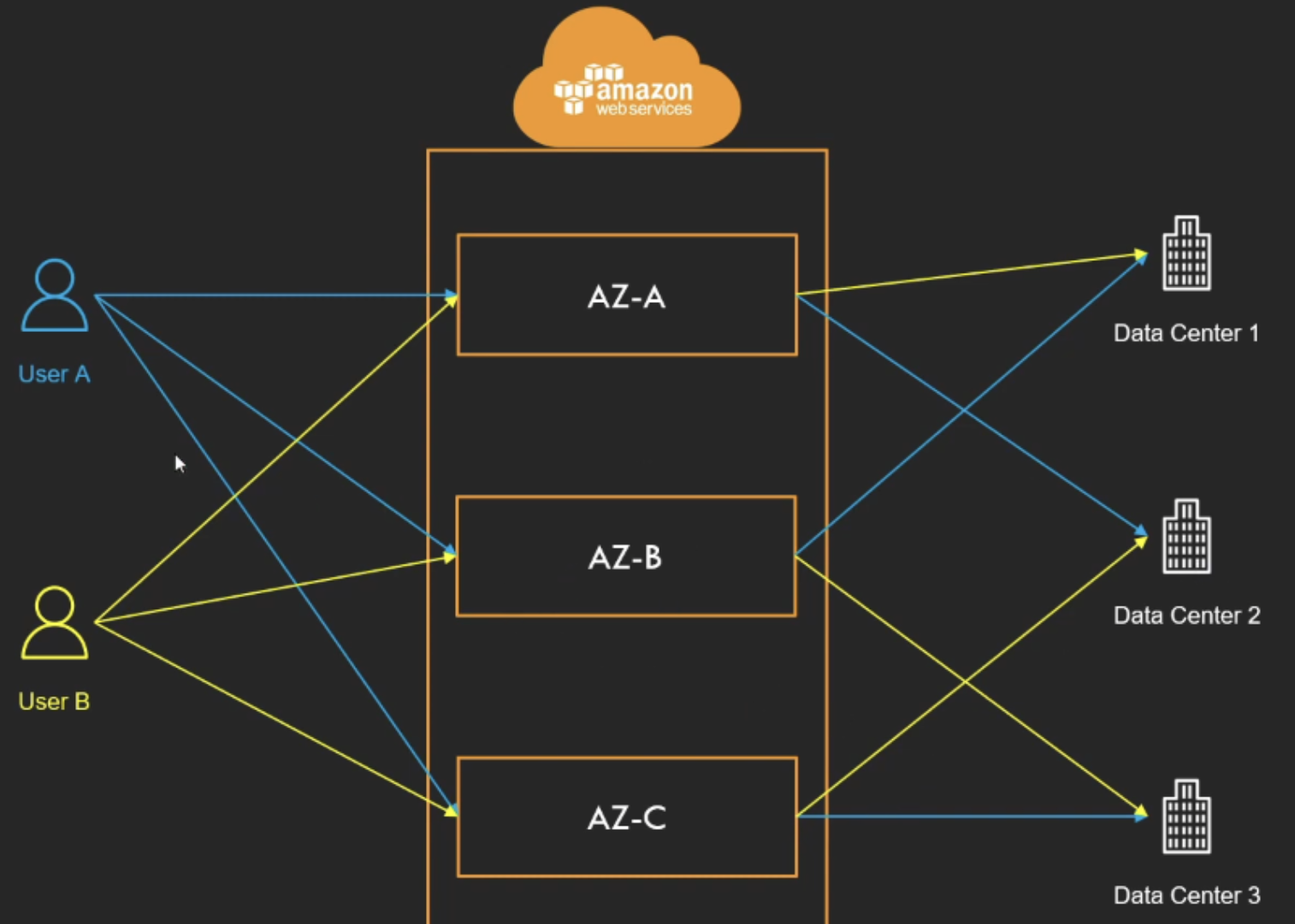 유저 A와 B가 AZ-A 가용영역을 같이 사용한다고 해도 정확히 둘의 데이터가 같은 데이터 센터에 저장되지 않을 수도 있습니다.