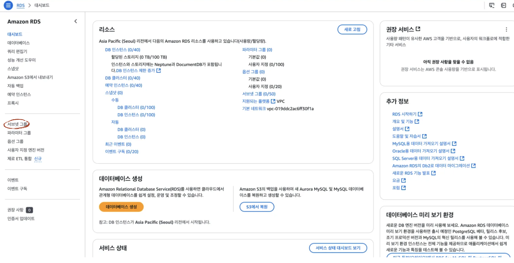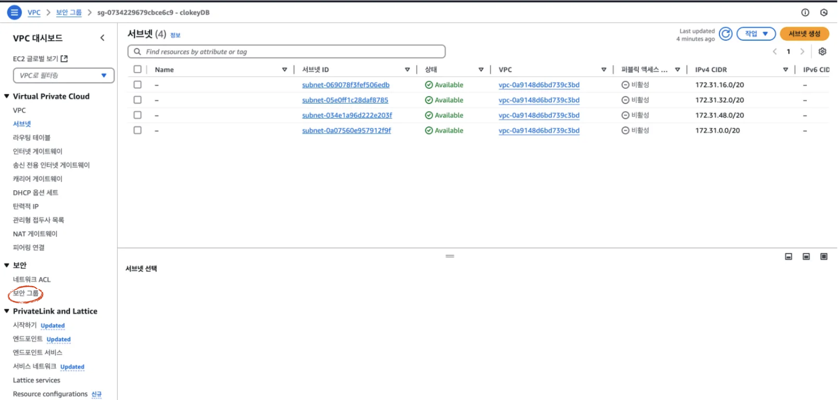 - DB 서브넷을 만들기 위해 서브넷 그룹에 들어가 주세요.