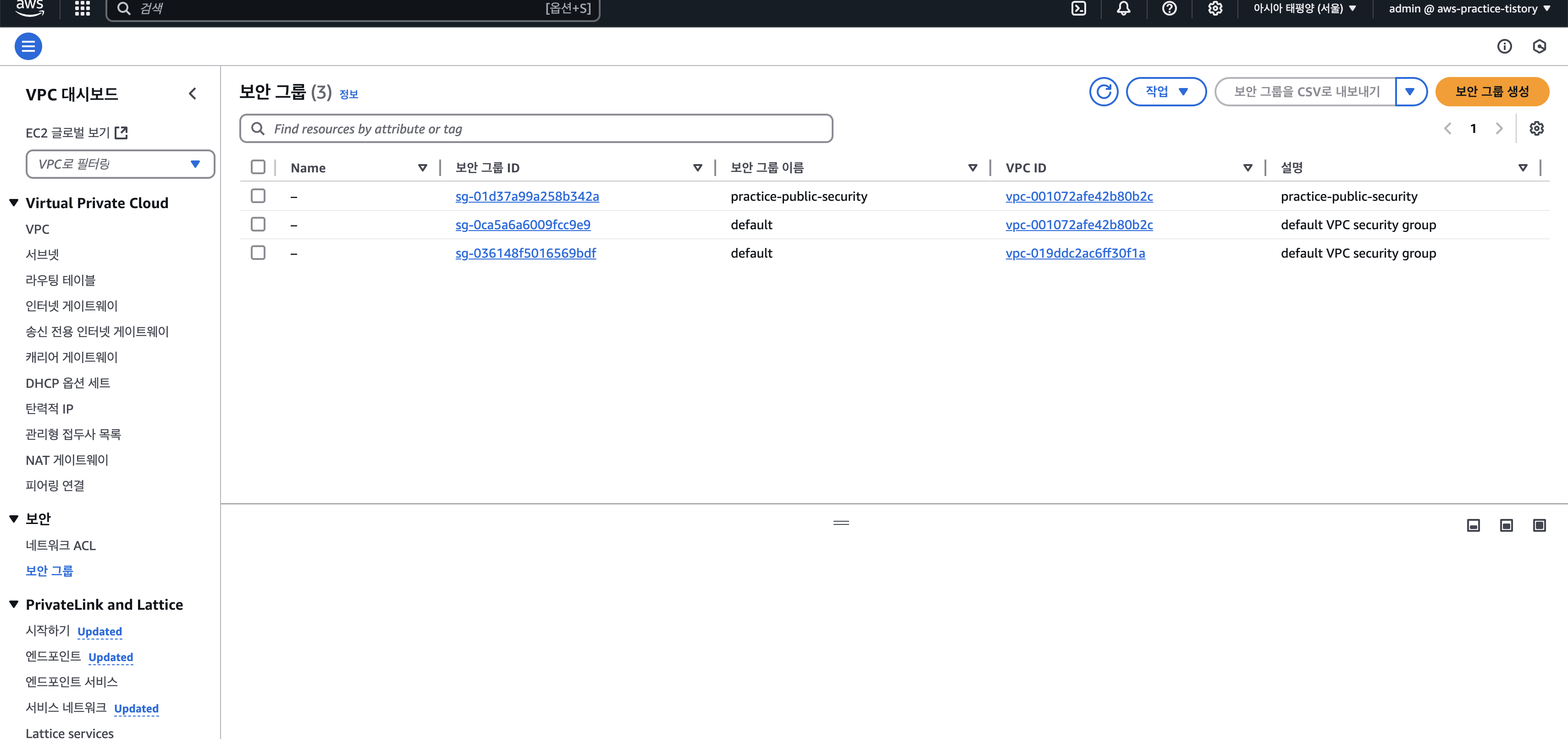 - 다음으로 RDS에서 사용할 보안 그룹을 미리 만들어 주겠습니다.