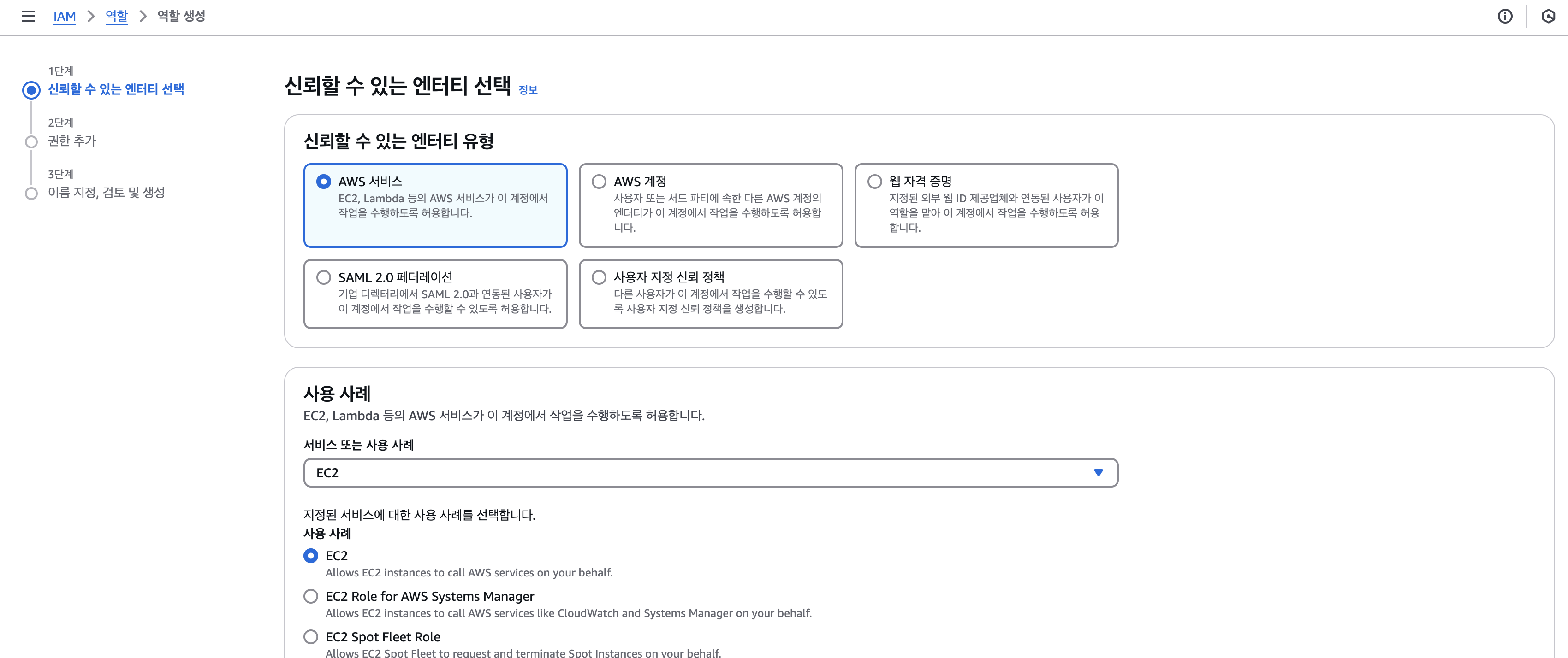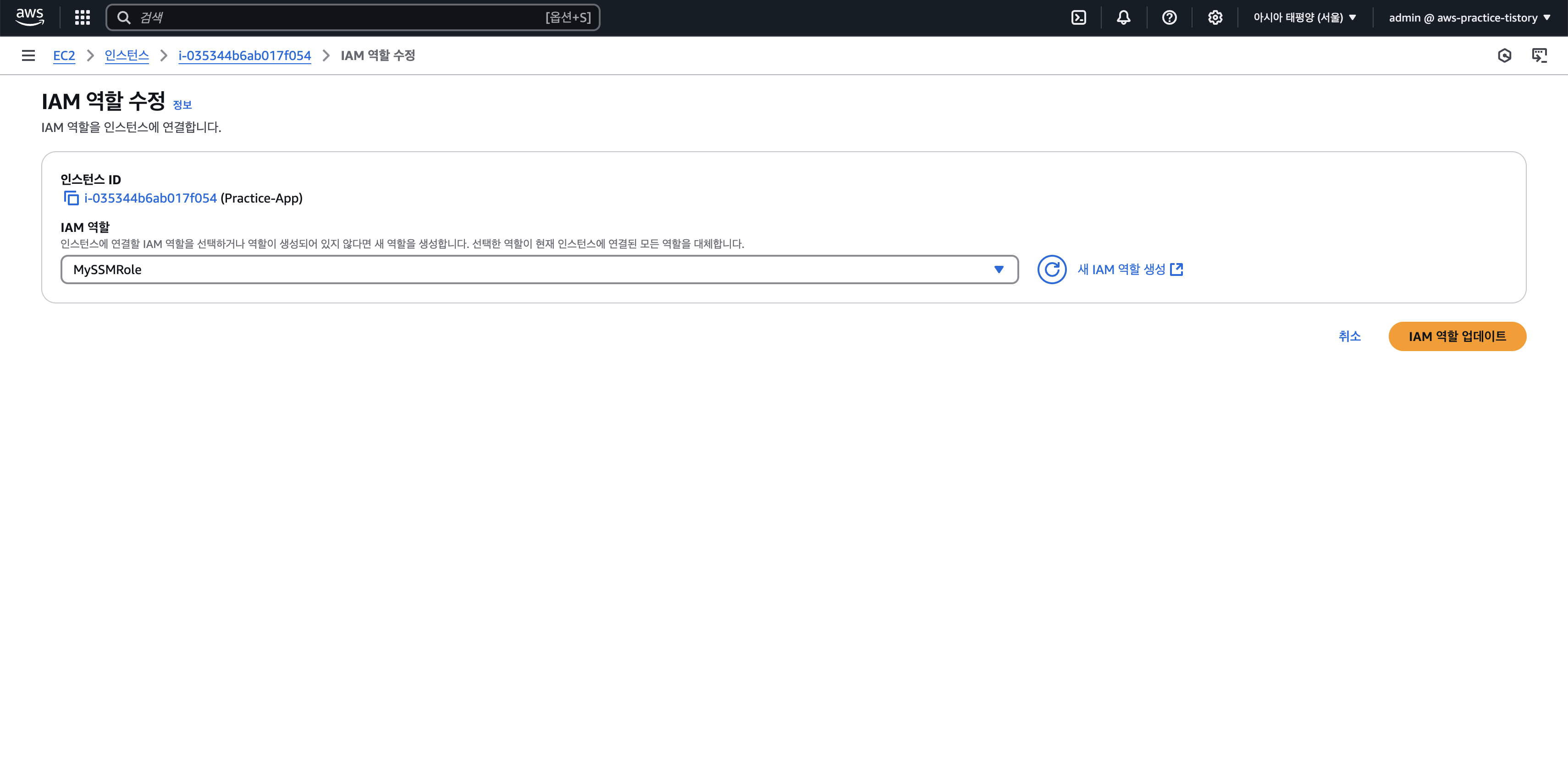- 다음으로 기존에 만들어 놓은 EC2로 들어가서 IAM 역할을 수정해주겠습니다.