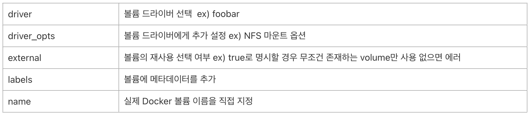 Volume은 컨테이너들이 공유하는 저장소입니다. docker-compose.yml의 최상단 volumes: 키를 이용해서 여러 서비스가 공유할 수 있는 볼륨을 정의할 수 있습니다.