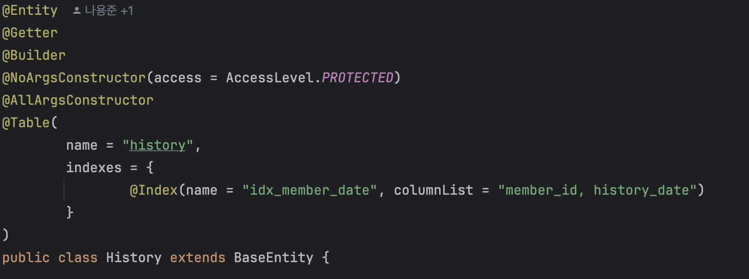 ✅그리고 이런 Projection 메서드를 다루고 있는 Repository 인터페이스를 HistoryProjectionRepository로 분리하고 HistoryRepository가 HistoryProjectionRepository를 상속받게 구성하여 서비스단에서 추가적으로 프로젝션 전용 Repository를 상속받지 않도록 하여 프로젝션을 이용하면서 유지 보수성과 코드 가독성을 최대한 높였습니다.