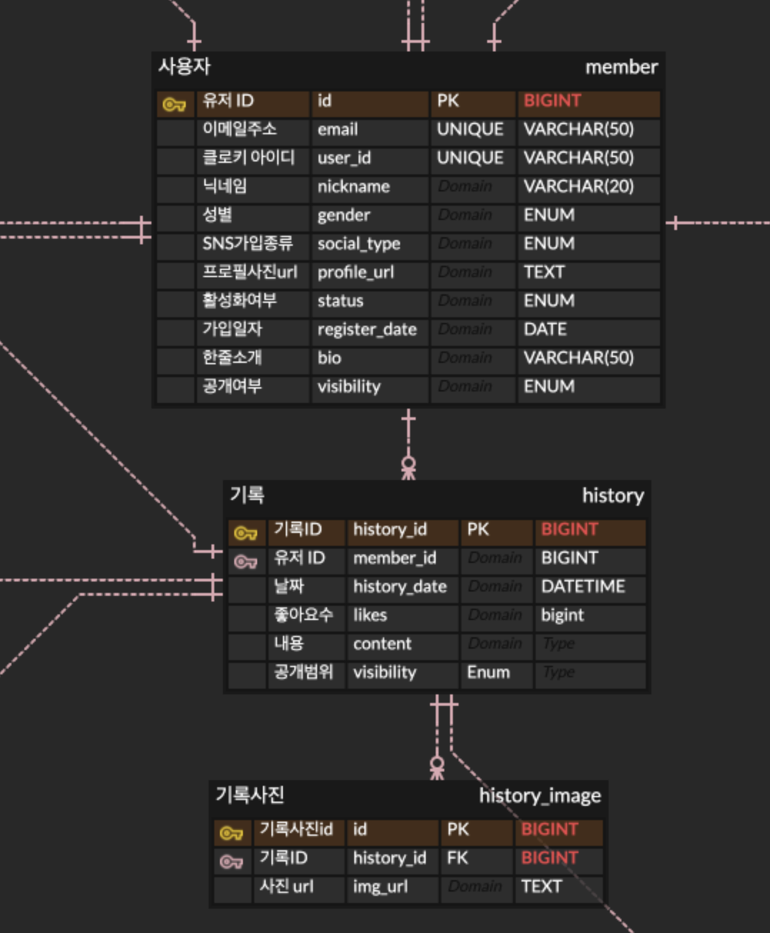 한 유저의 N월의 기록을 불러오고, 기록마다 사진이 여러 개 있을 수 있는데 첫 번째 사진(대표 사진)을 불러오는 로직과 같이 복잡한 로직에서 loop을 돌지 않고 한 번의 요청으로 모두 가져올 수 있도록 설계했습니다.