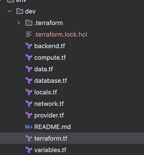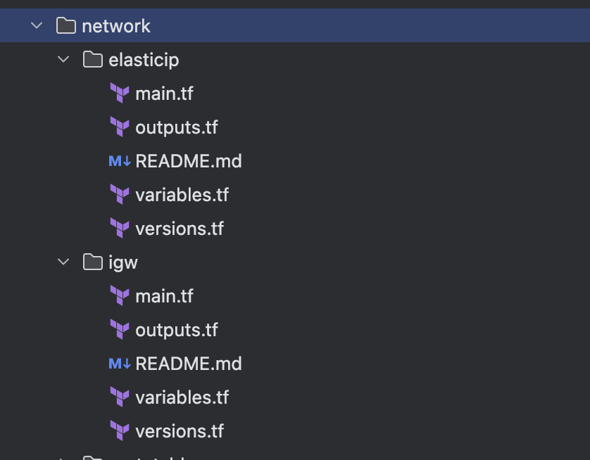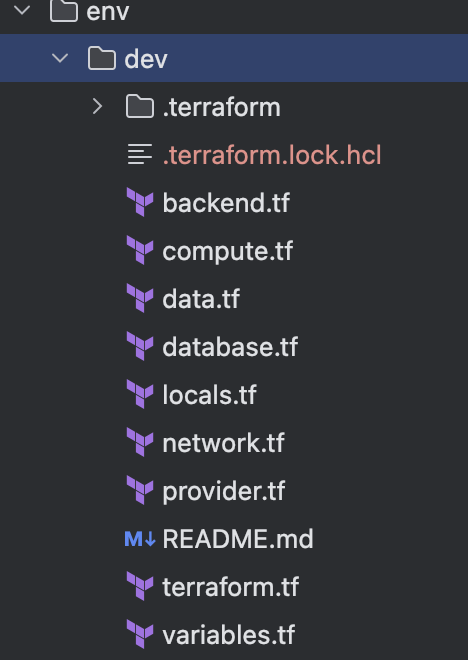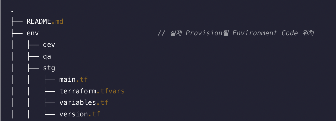 사람들마다 코드 구조가 조금씩 다르지만 , 위처럼 module 디렉토리를 만드는 것은 거의 확정적이라고 생각하시면 됩니다. 그런데 AWS 환경 구성 코드를 env로 분리하지 않는 경우도 있습니다.