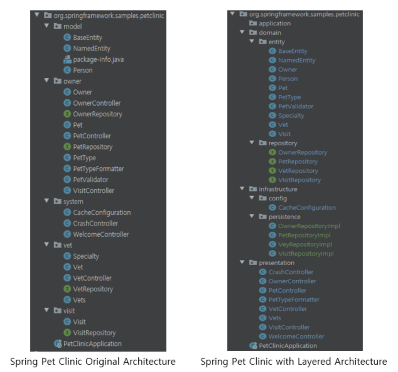 예시로 가장 대표적인 Spring Pet Clinic의 구조를 살펴보겠습니다.